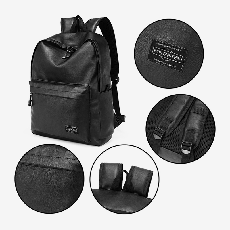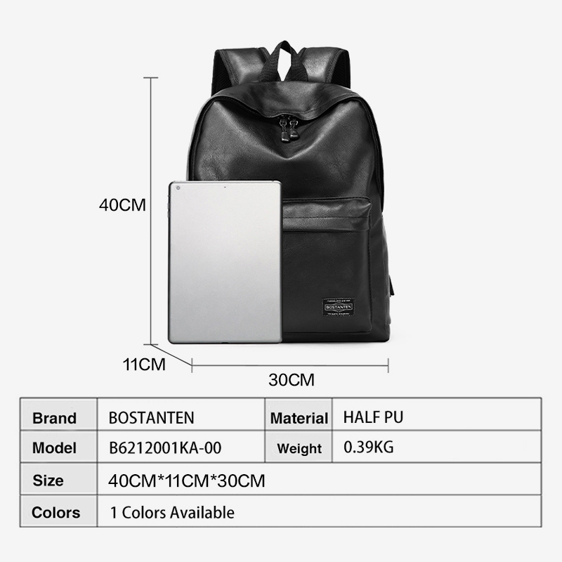 BOSTANTEN Ransel Kasual Kulit PU Warna Hitam Tas Sekolah Siswa Tas Kerja