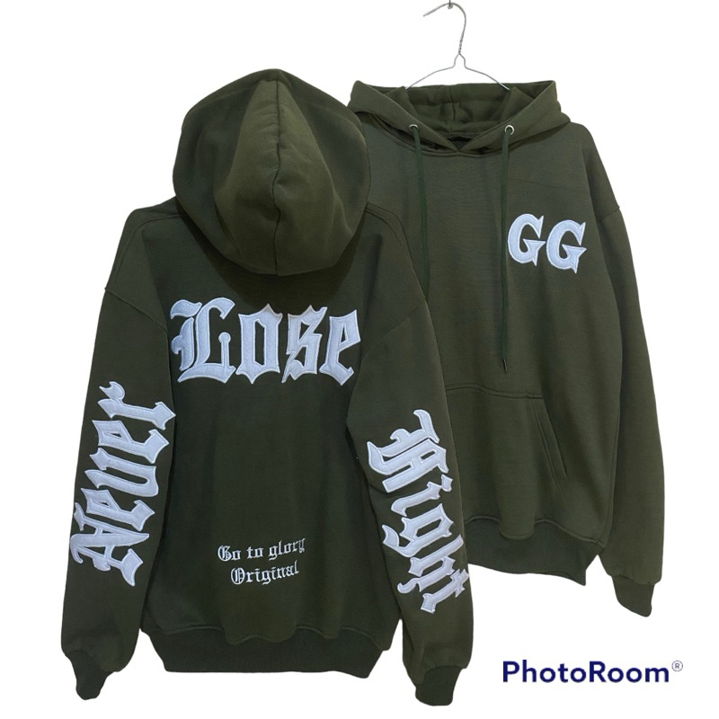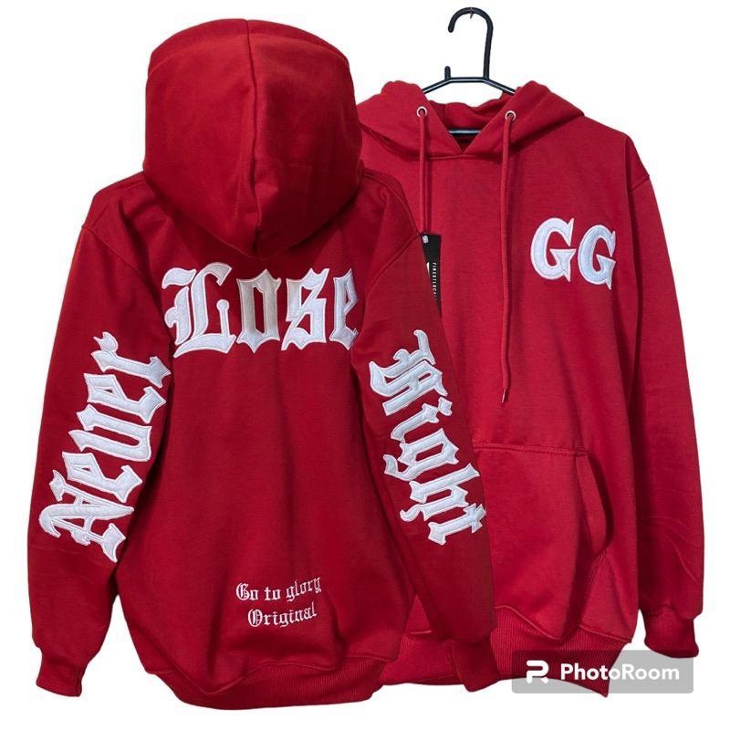 Hoodie Pria Keren Kekinian Full Bordir GG Never Lose Fight Sweater Pria Wanita Terbaru