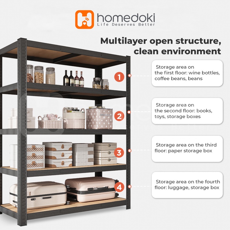 Homedoki Rak penyimpanan 5 tingkat / 5 susun Rak gudang Serbaguna Rak/ lemari dapur serbaguna