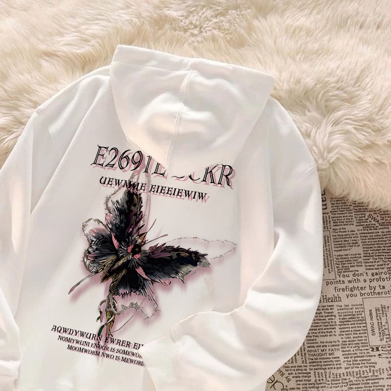 Po Floret Sweater Hoodie Oversize Wanita Butterfly Print Hoodie Wanita Oversize Korean Style Tebal Ori