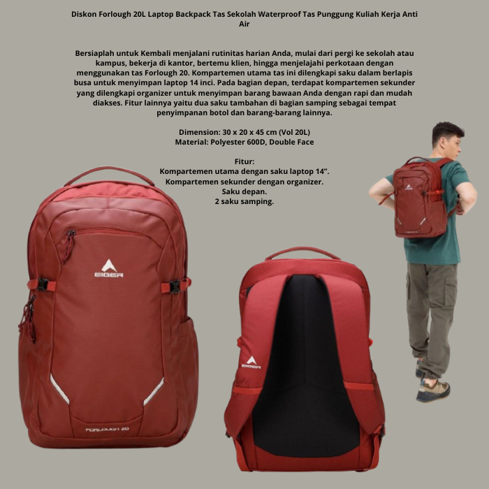 TAS RANSEL EIGER FORLOUGH 20 LAPTOP BACKPACK MAROON - ORIGINAL