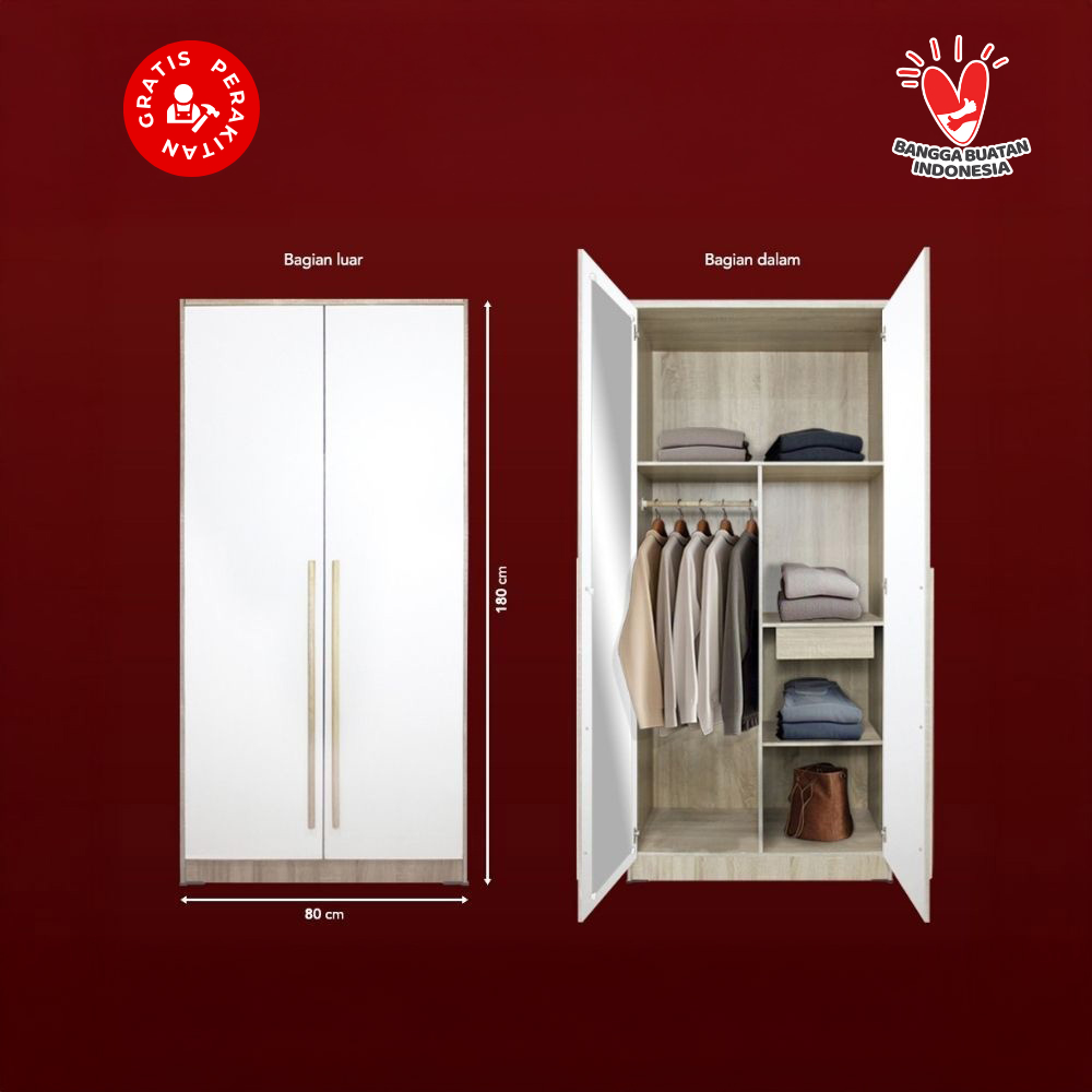 Homewell Lemari Pakaian Baju 2 Pintu Minimalis Termurah