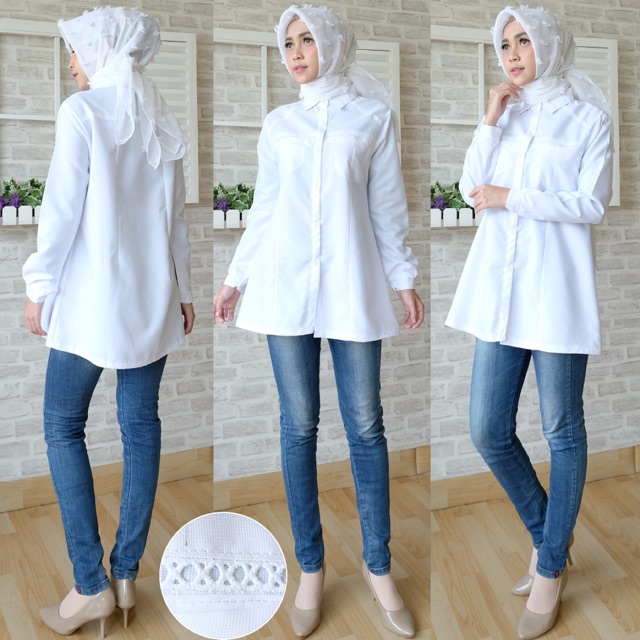 Seenaoutfit - Km 002 Kemeja Baju Putih Polos Pns Wanita Kerja Kantoran Terlaris Baju Kantor Jumbo Cewek Formal ( Kemeja