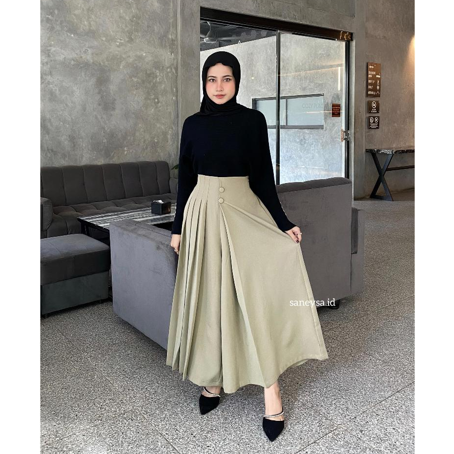 Shenna Kulot Pleats - Celana Kulot Rok Wanita - Celana Bawahan Casual Formal Daily - Semi Wool Skirt - Puspa Kulot Highw