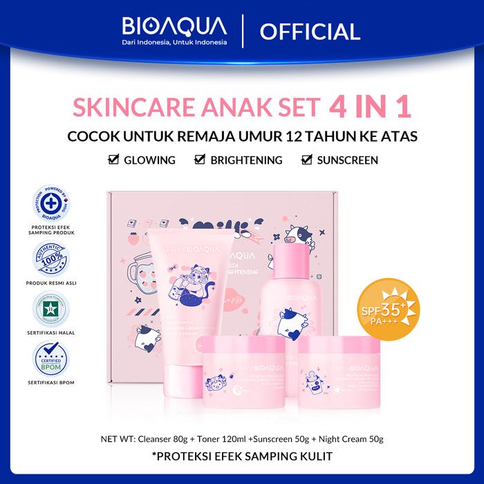 [Star] 【BPOM】BIOAQUA Milk Niacinamide Glowing & Brightening Set Cleanser 80g + Toner 120ml+ Sunscreen 50g+ Night Cream 5