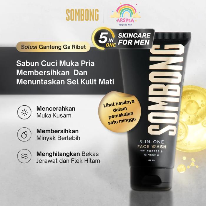 [Star] SOMBONG 5-in-1 Face Wash With Coffee & Ginseng Sabun Pembersih Wajah Pria 100ml