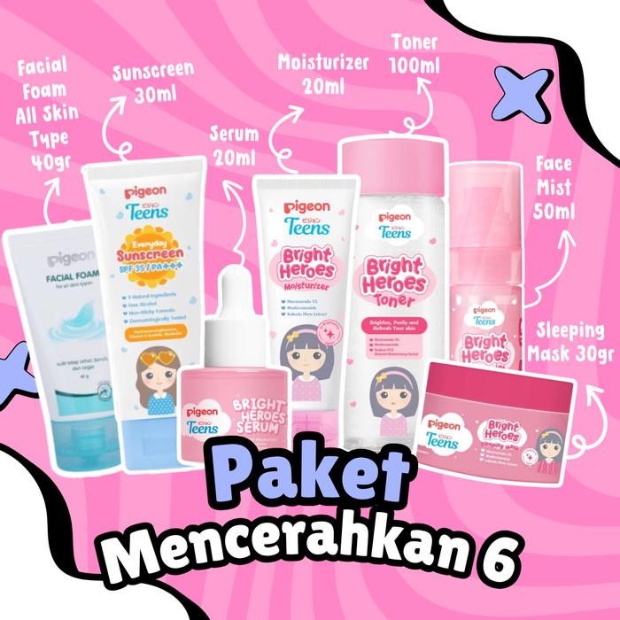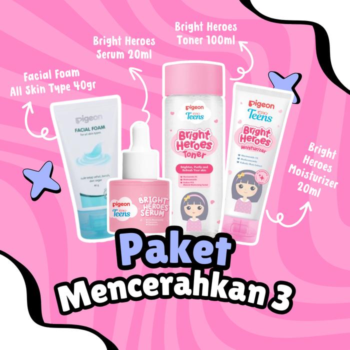 [Star] Pigeon Teens BRIGHT HEROES SERIES Skincare SET Paket Mencerahkan Wajah Remaja Niacinamide Infused - PAKET MENCERA