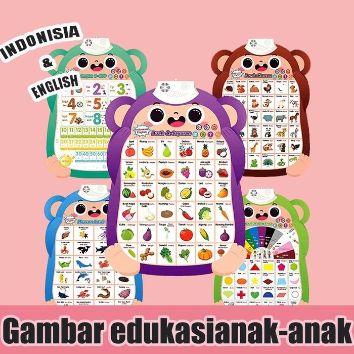 [Star] Poster Angka dan Huruf Edukasi Anak Poster Edukasi Anak Bersuara/Poster Gantung Belajar Anak - Dunia Hewan