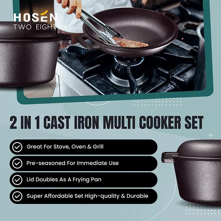 Panci Wajan Dutch Oven Tutup Grill 26 cm 2 in 1 Cast Iron Best Seller