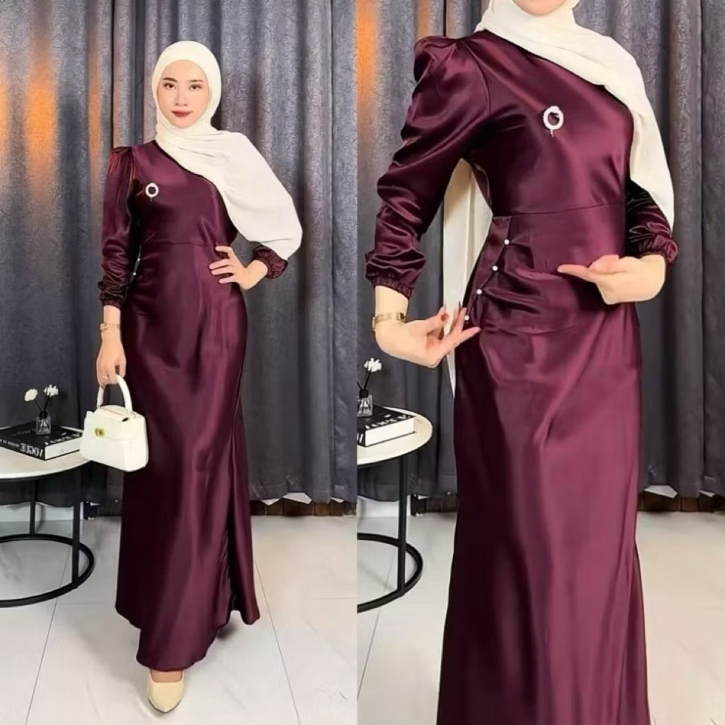 Elora Dress Satin Silk Premium Baju Fashion Wanita Kondangan Wisuda Couple Muslimah Gamis