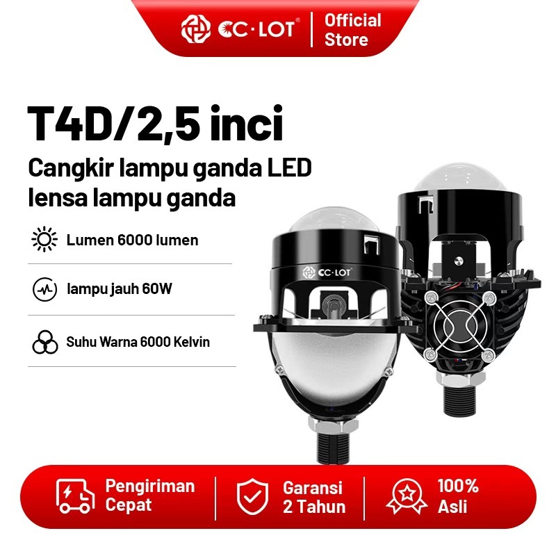 CCLOT Lensa BiLED Ganda 2.5 Inch 60W Double Projector Motor Kipas Pendingin Paket Hemat