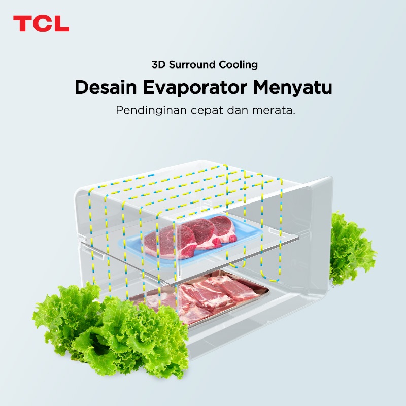 TCL Kulkas 2 Pintu (F130-A50) - Kapasitas 118L - Rak Freezer Terpisah - 3D Surround Cooling - Adjustable shelves
