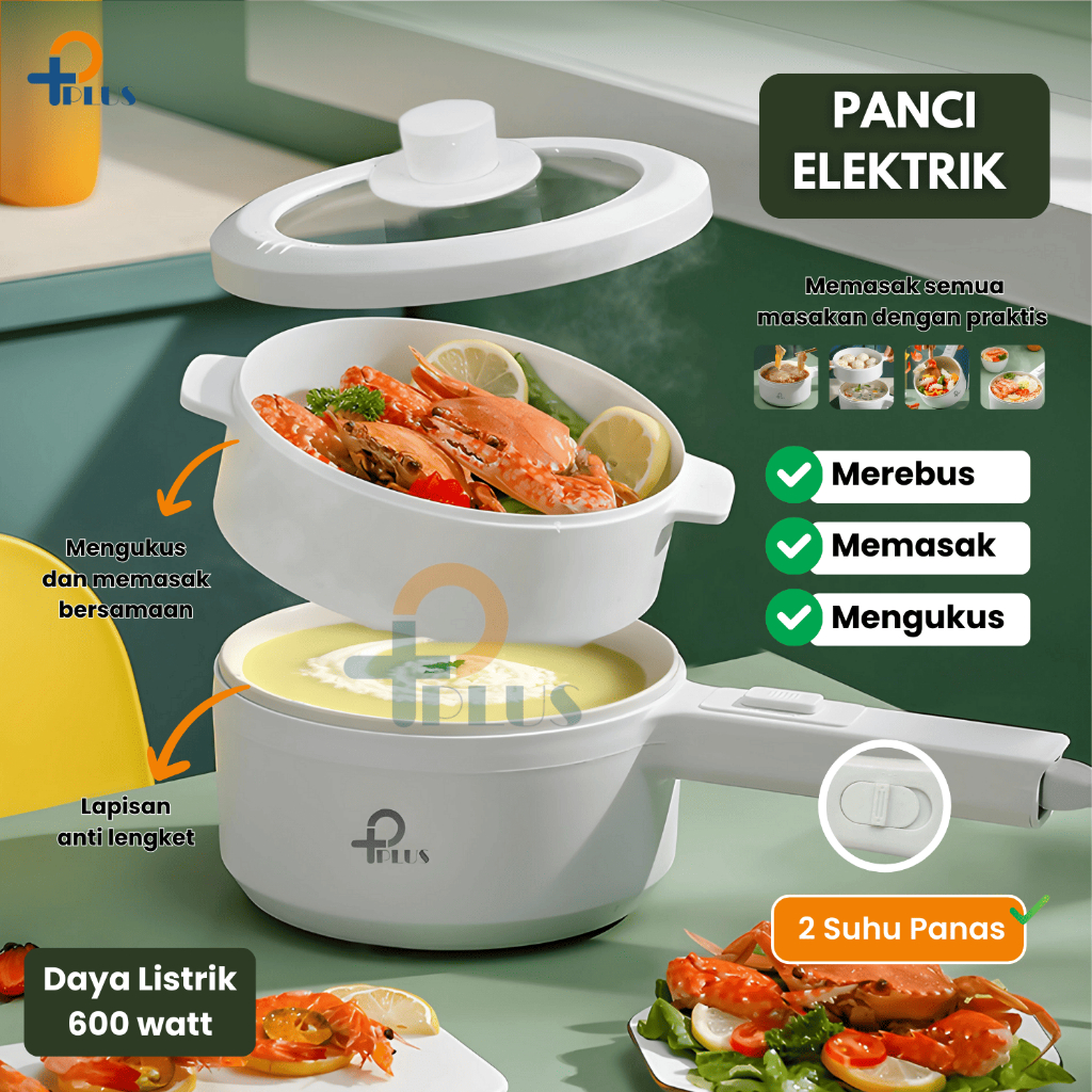 Panci Listrik Multifungsi Anti Lengket + Kukus 2 in 1 low wat 600w / Fry Pan Electric 2L panci - Panci penggorengan Kera
