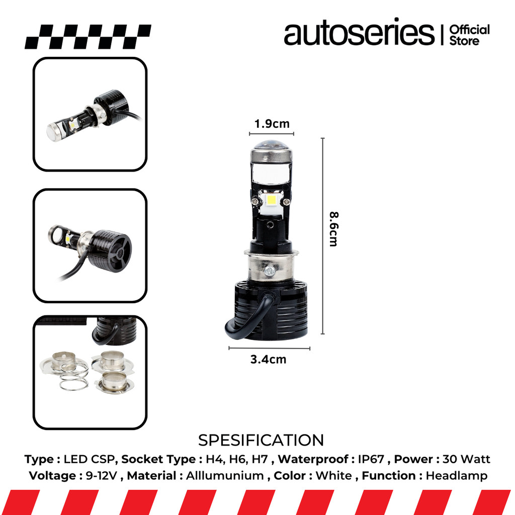 LUXIMOS Lampu Utama Mini Projector 30W H4 H7 H6 Biled Cutoff RHD Super Terang Motor MP1S - AUTOSBY