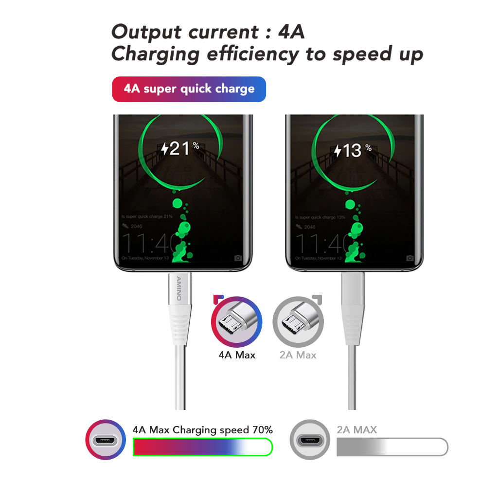 [Mall] AMINO Kabel Data 4A Micro USB / 4A TYPE C Fast charging Cable QC 3.0 Quick Charge Ori