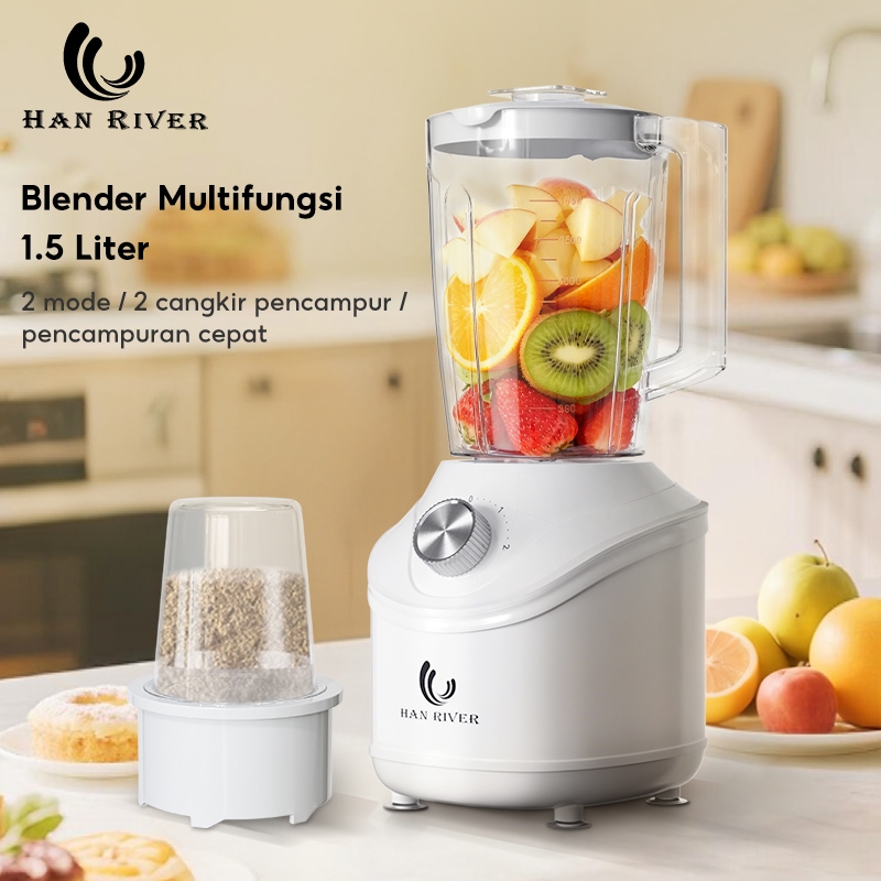 Han River Blender Multifungsi 250W Suara Lembut 2-In-1 Blender Terbaik Pembuat Jus Double Cup 1500Ml