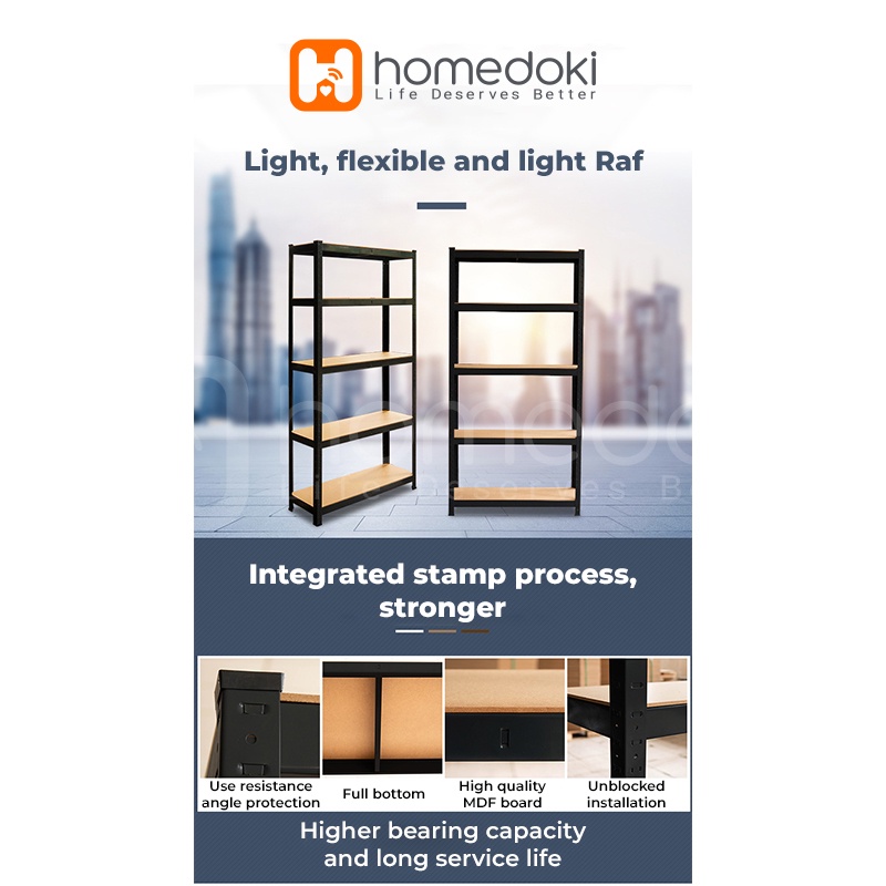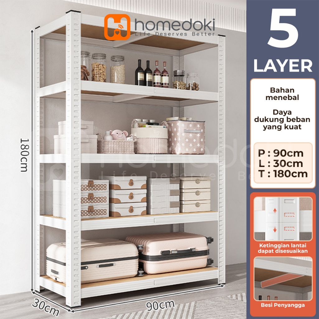 Homedoki Rak penyimpanan 5 tingkat / 5 susun Rak gudang Serbaguna Rak/ lemari dapur serbaguna