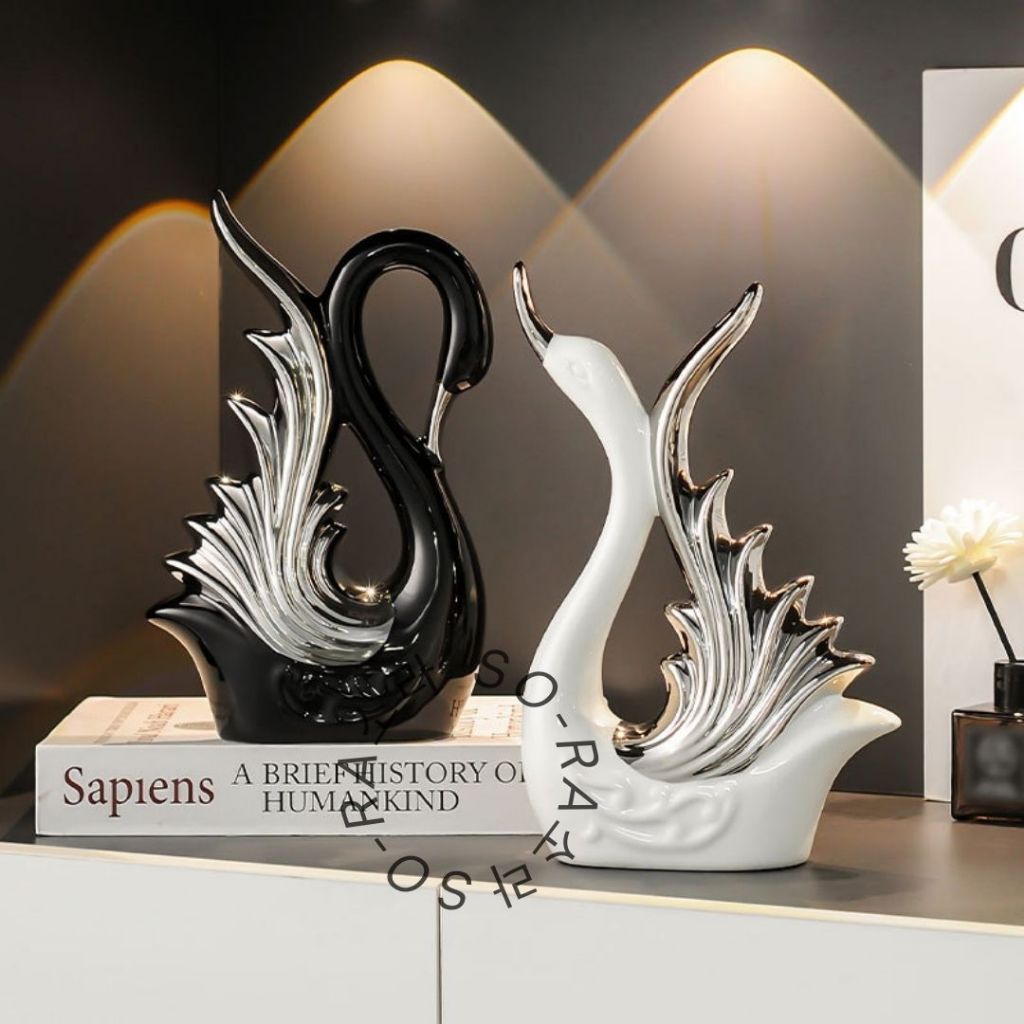 1 SET Pajangan Angsa Mewah Keramik Tebal 1 set Home Decor Dekorasi Rumah Patung Pajangan Burung Angsa Hiasan Meja Hiasan Ruang Tamu
