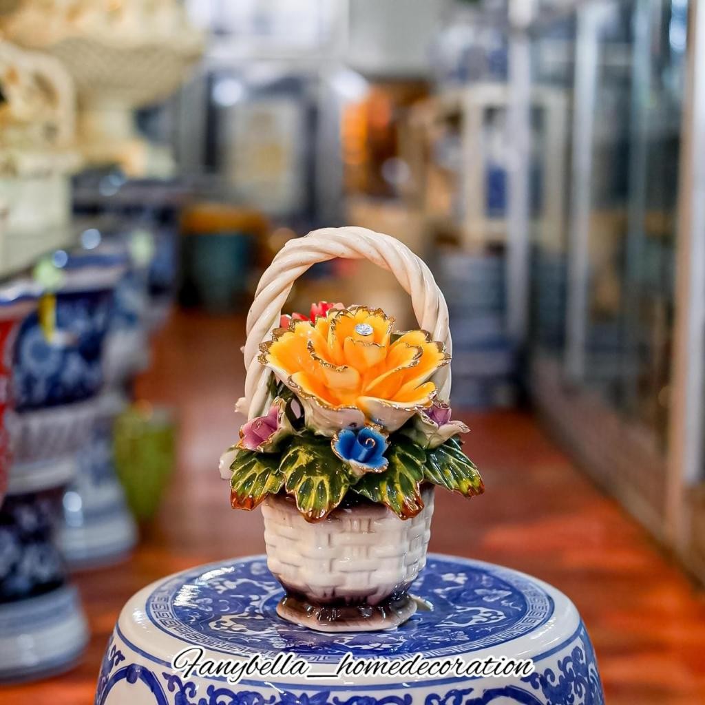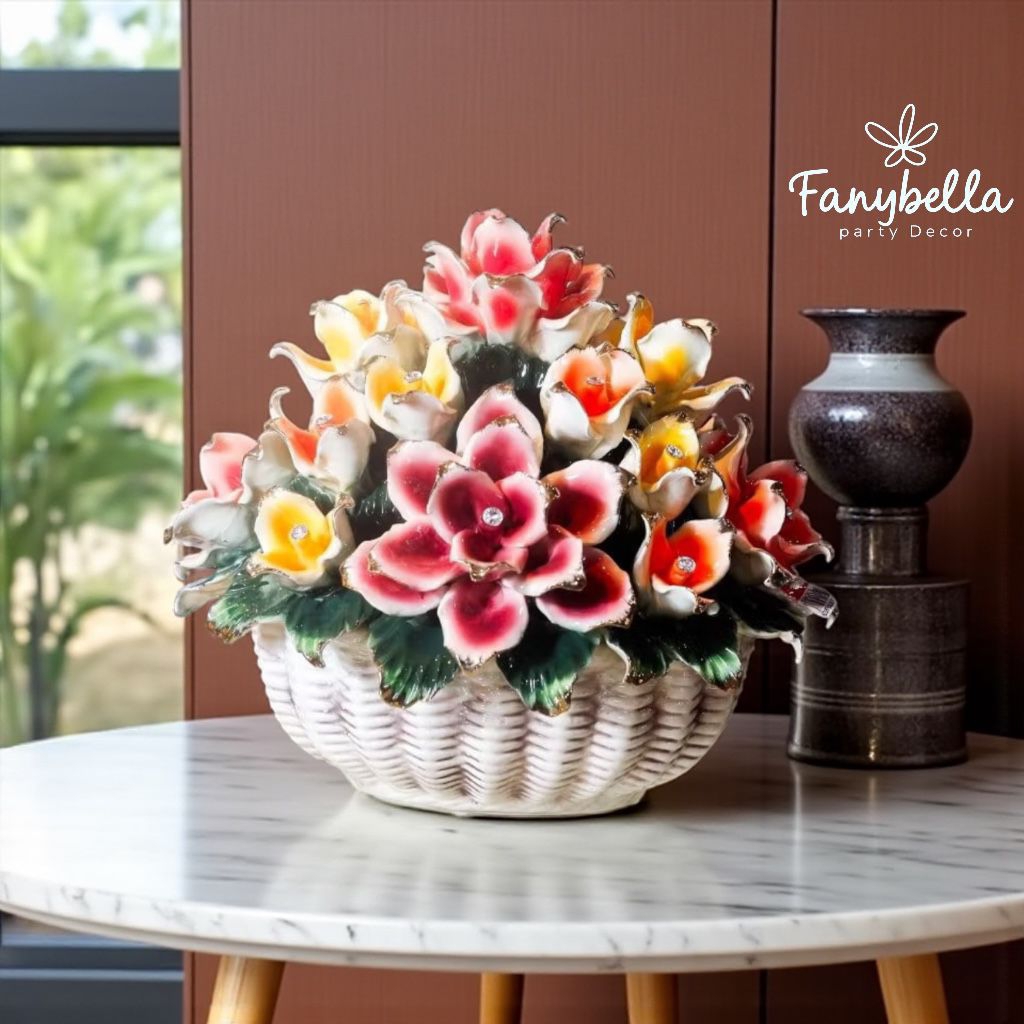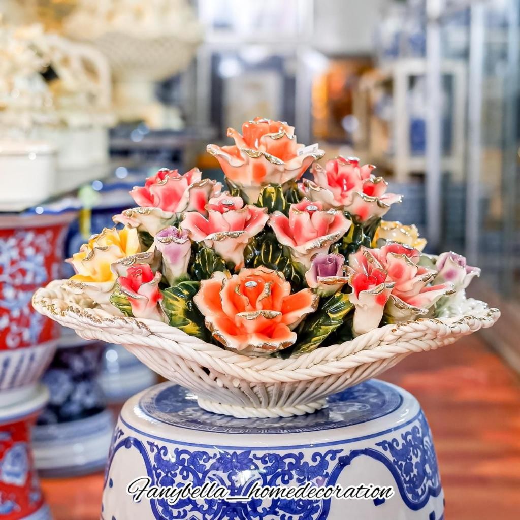 Pajangan Keramik Meja Capodimonte bunga Warna Warni Itali Dekorasi Rumah Set