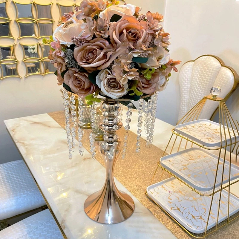 Vas Bunga Hiasan Dekorasi Mewah Pajangan Lemari Kaca Luxurious Wedding Vase Tetesan Kristal - VB001
