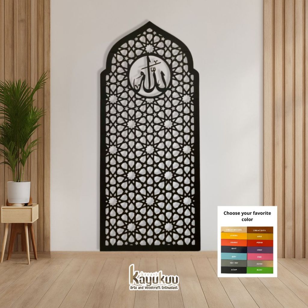 Kreasikayukuu Mihrab Mushola Kubah Allah Hiasan Dinsing Mushola Bahan Cutting Kayu Plywood 3mm