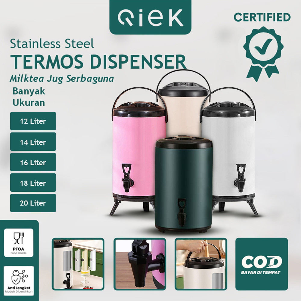 Qiek Termos Air Panas 12L 14L 16L 18L 20L Dispenser Stainless Steel Milk Tea Bucket Termos Air Milk Tea