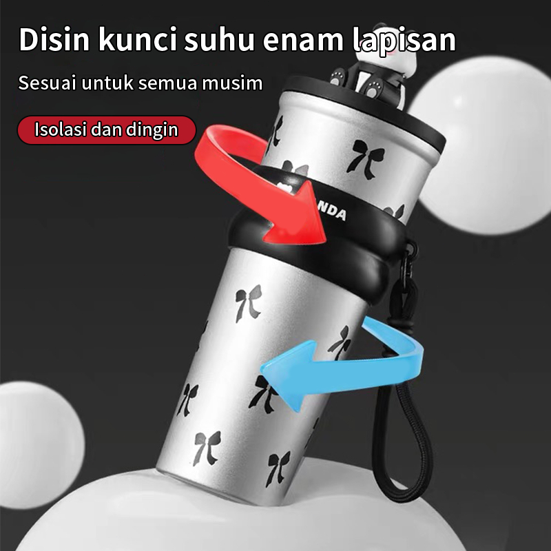 Olhome Cute Panda Termos air panas 700ML Tumbler Minum Stainless Steel Botol 316 Aesthetic Quality