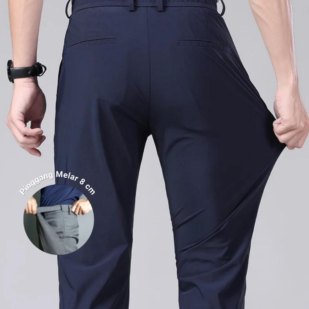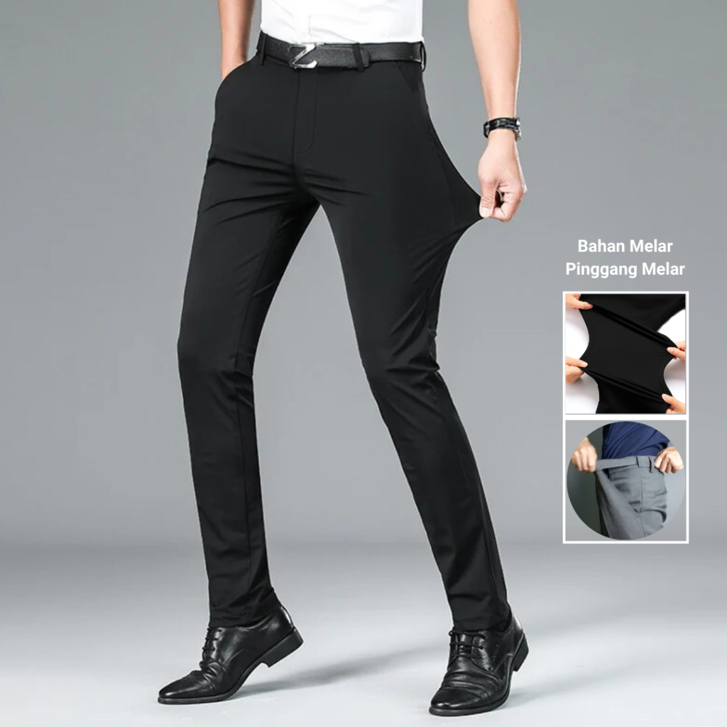 Babazeg Celana Formal Bahan Melar/Stretch Slim Fit Pria, Pinggang Melar