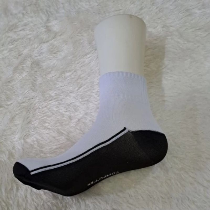3 Pasang Kaos Kaki Sport Pendek Tebal Blok Polos Hitam Putih