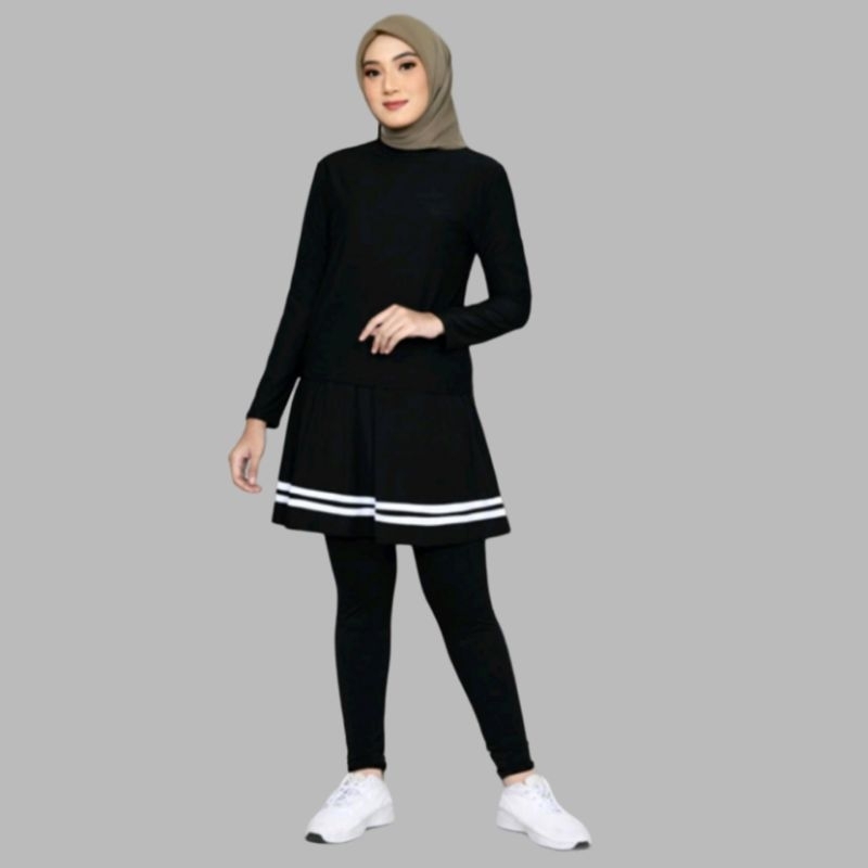 Legging Rok Olahraga Stripe Wanita Skirt Sport Jogging Renang Sepeda Lari Zumba Senam Aerobik