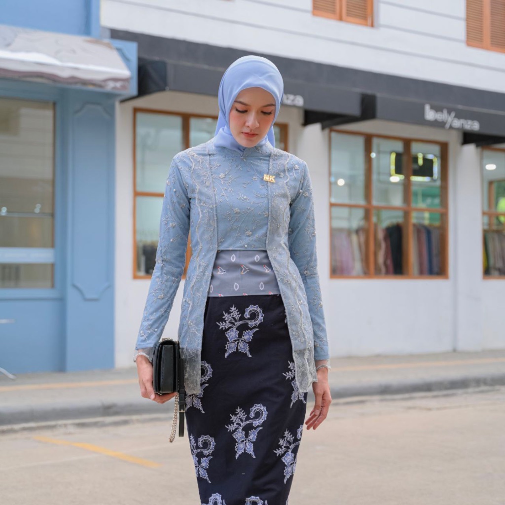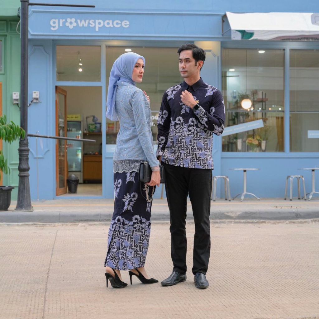 Nk Batik Couple Kebaya Modern Canova Kutu Baru Jumbo Biru Muda