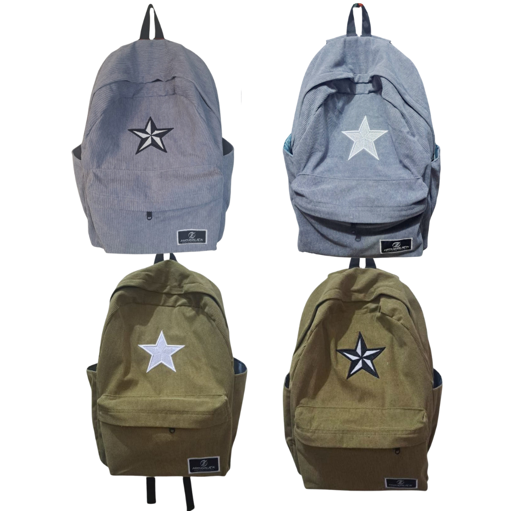 Tas Ransel Backpack Corduroy/uroy Bintang Sekolah & Kuliah Pria Wanita Jahitan Double Bartex
