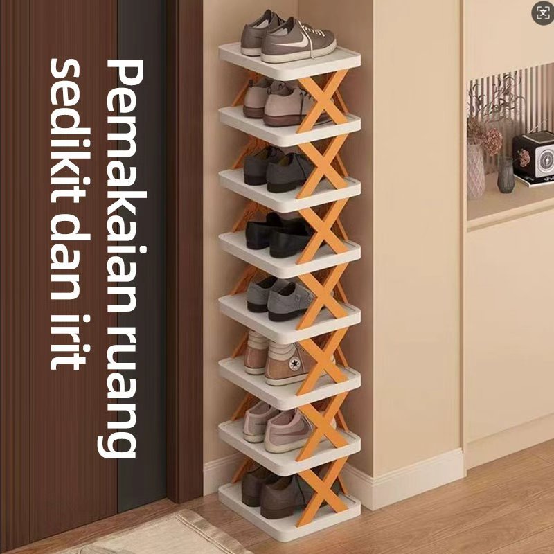 Rak sepatu X tempat rak sepatu susun rak sendal tempat sendal rak serbaguna plastikRak Sepatu Plastik Sederhana Bertingkat untuk Rumah Tangga & Kosan, Tempat Penyimpanan Sepatu di Depan Pintu Masuk