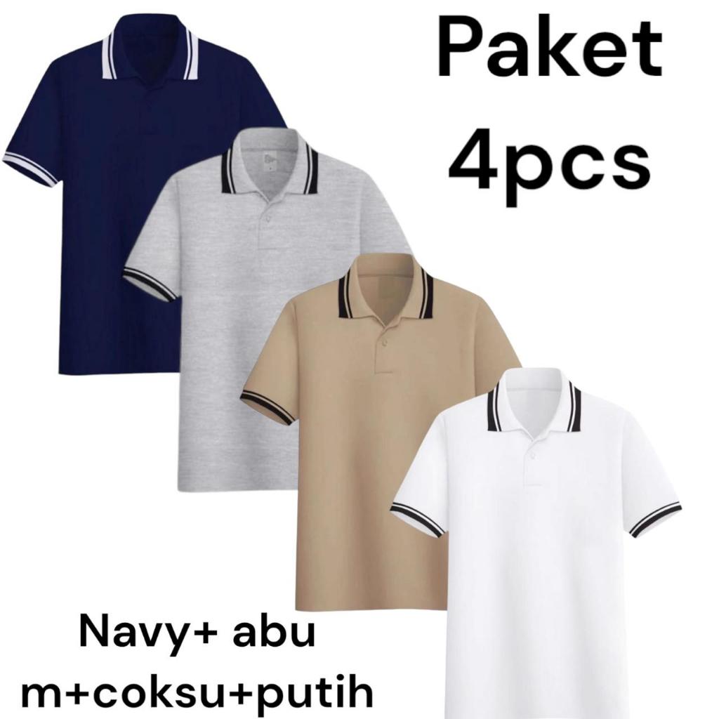 Paket 4Pcs Kaos Polo /Shirt Polos Hitam Putih Kerah Stripe | Cowok/ Wanita