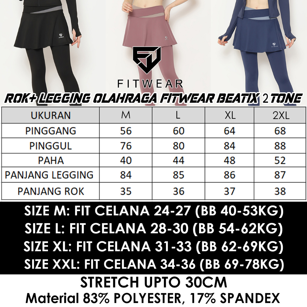 Rok + Legging Olahraga Padel Dryfit Wanita Fitwear Beatrix 2 Tone - M - 2Xl