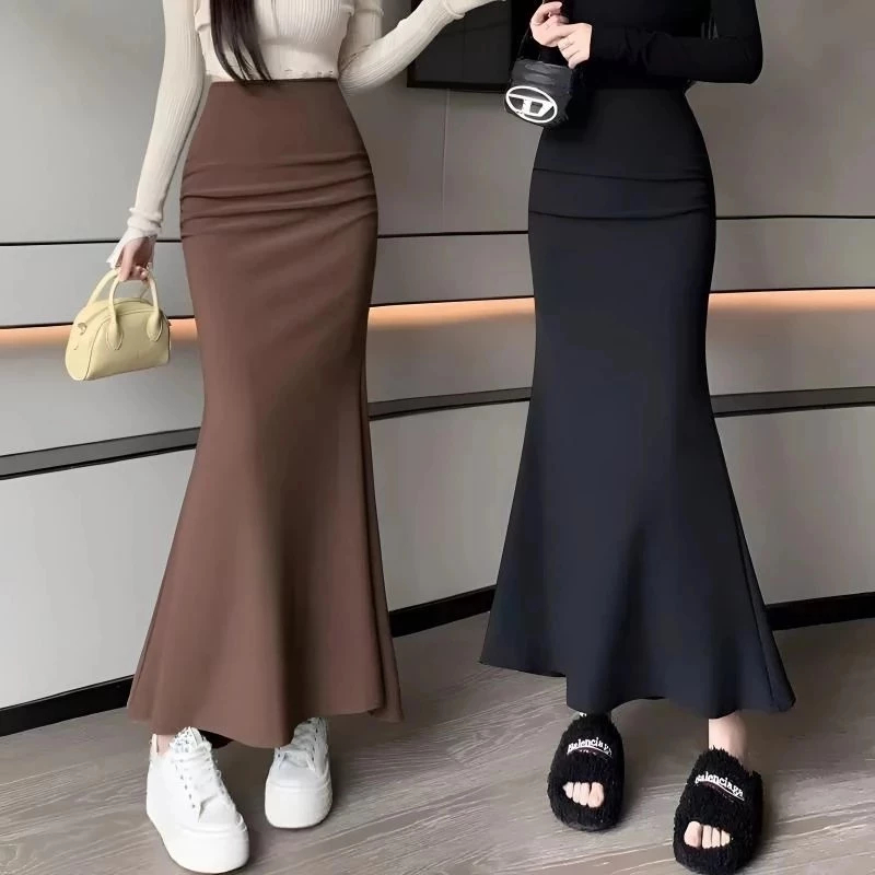 Rok Skirt Lunar Mermaid Duyung Wanita Kekinian Maxi Bahan Scuba Elastis Melar Silmy