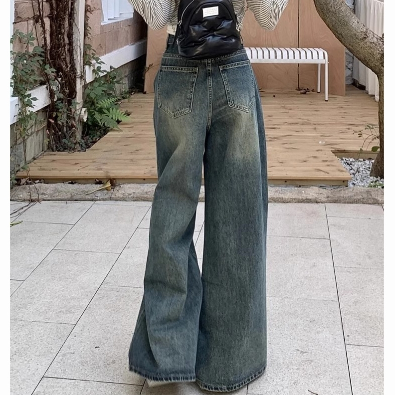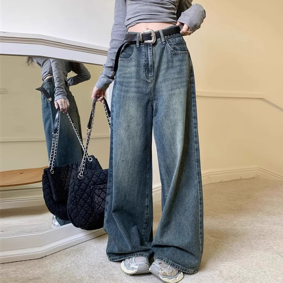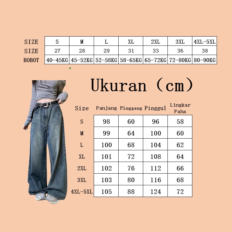 S — 6Xl Celana Jeans Bigsize Jumbo Jeans High Waist Wanita Celana Denim Panjang Pinggang Karet Baggy Pants Celana Cutbra