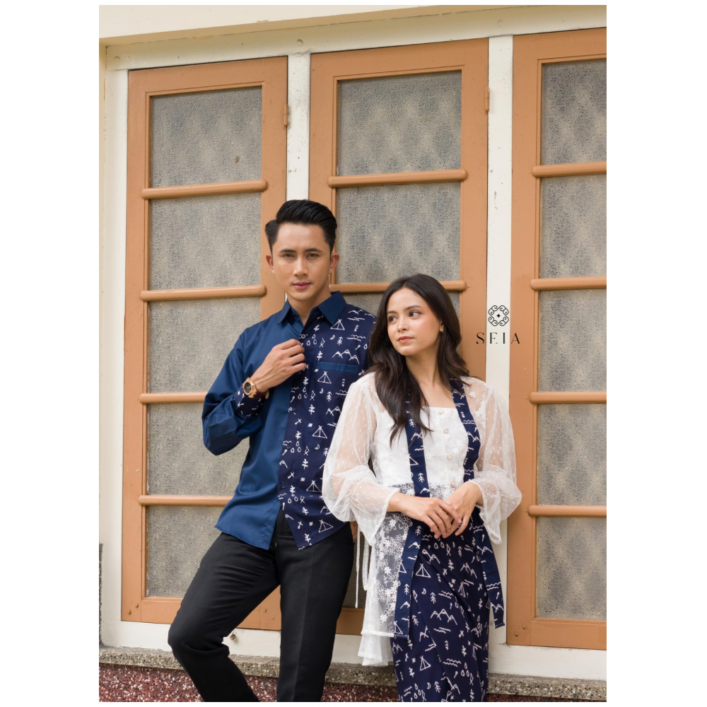 Semi Set Couple Outer Kutubaru Kemeja Batik Navy