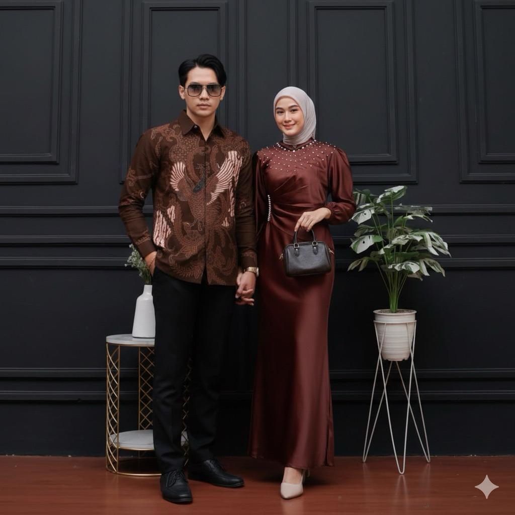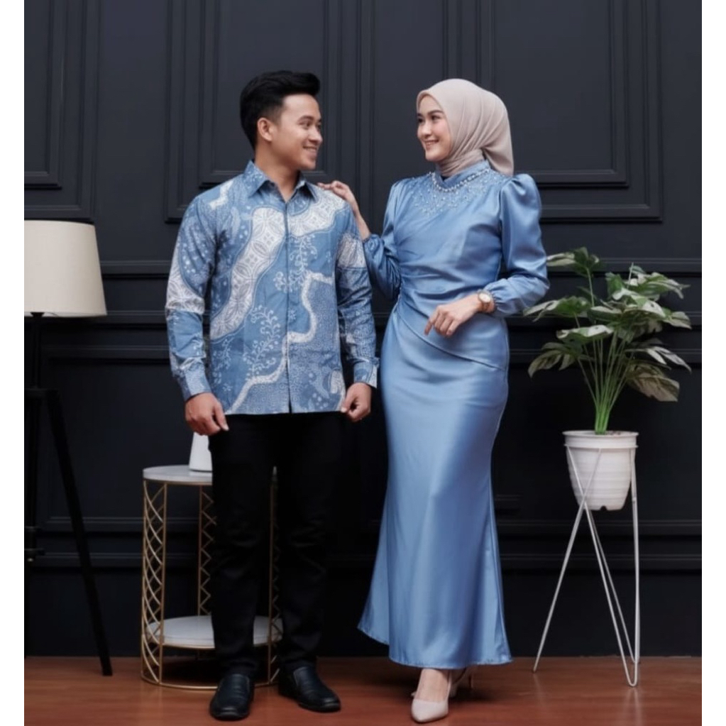 Set Couple Vina Dress Kemeja Batik Set Pasangan Kondangan Kekinian Termurah Paket Couple Keluarga