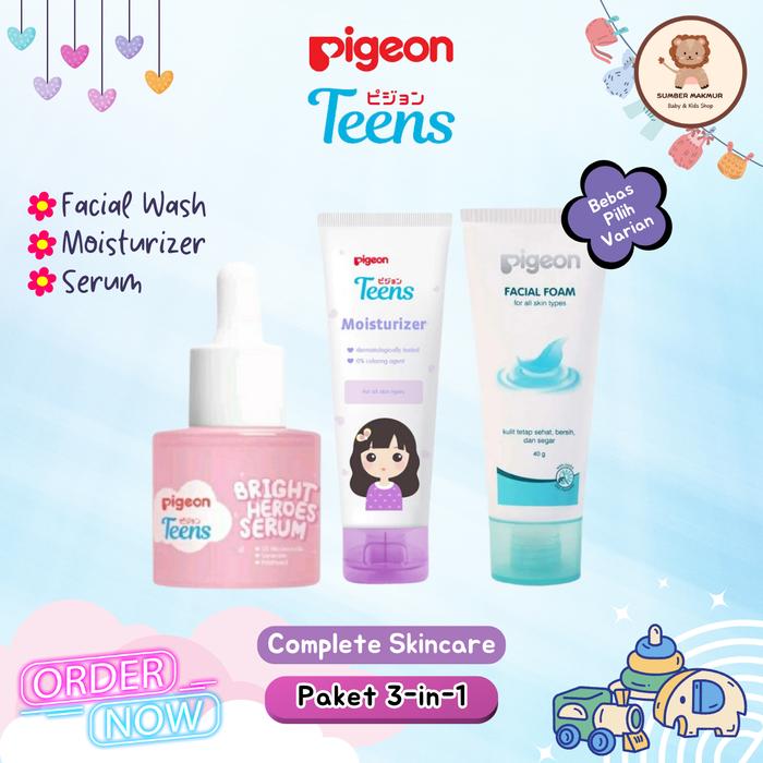 [Star] Pigeon Teens 3in1 Paket Lengkap Skincare Remaja Facial Wash / Pelembab Wajah / Serum Wajah - PAKET KULIT KERING
