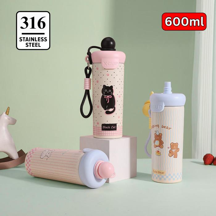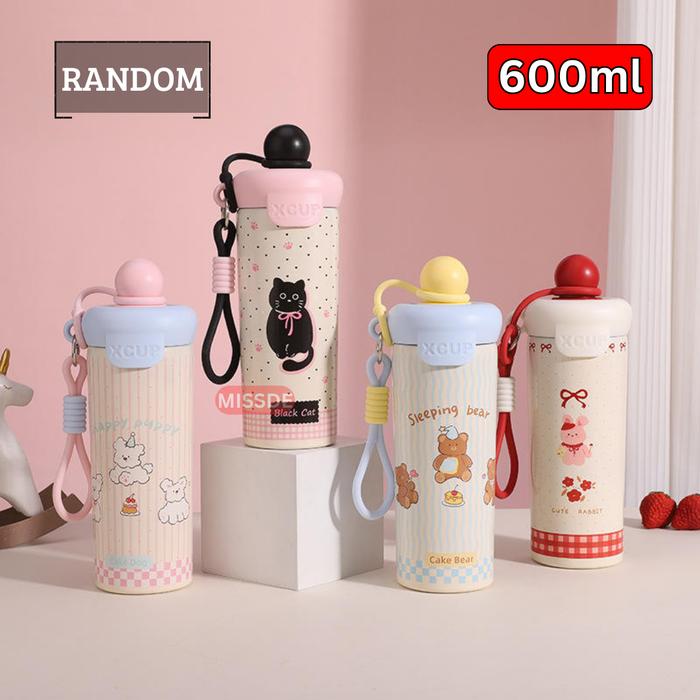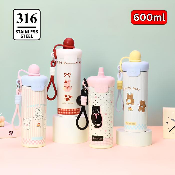 Tumbler Bottle Stainless Steel 600Ml / Botol Minum Anak Sedotan Cute - Cute Random
