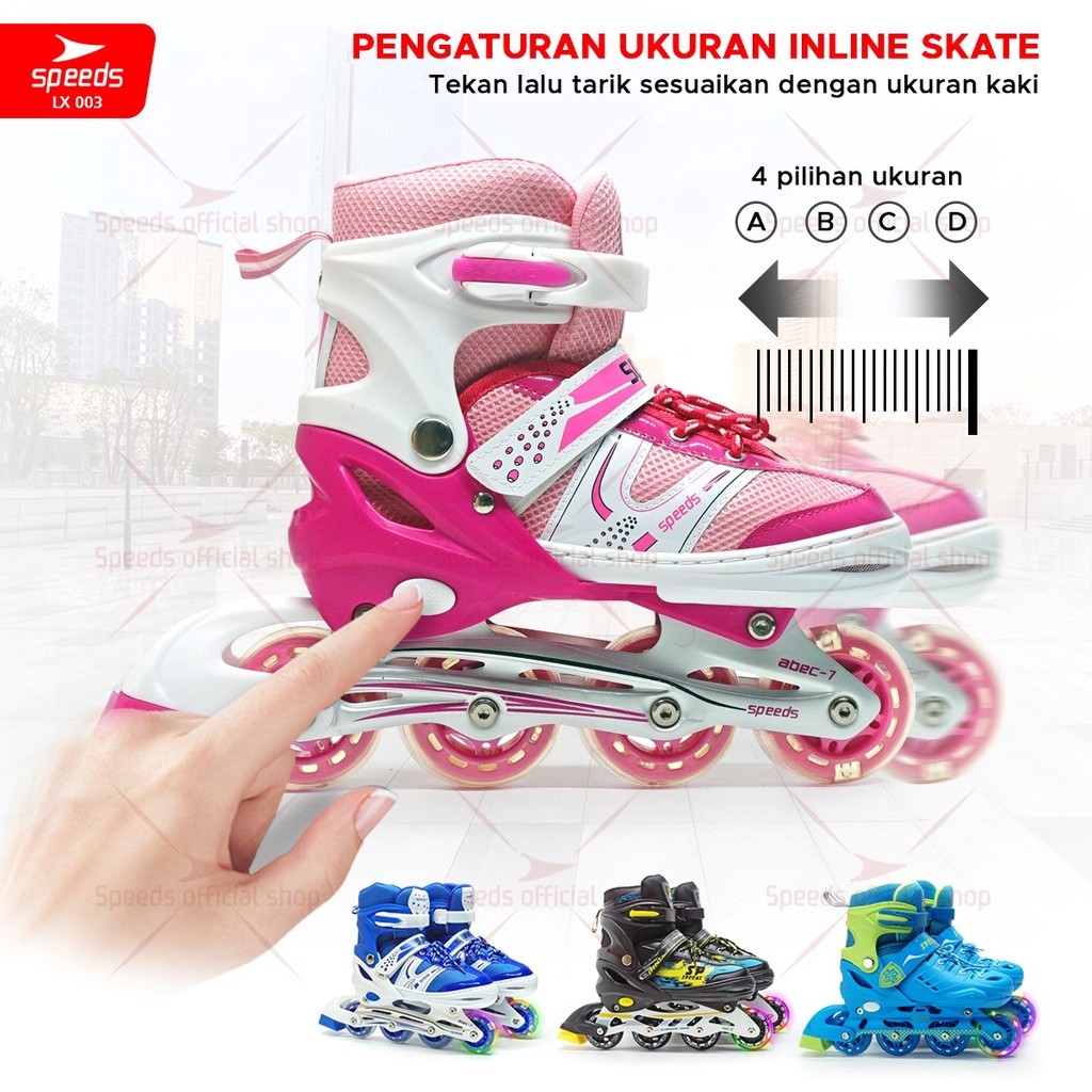 SPEEDS Sepatu Roda Anak dan DEWASA Inline Skate Full Karet PU Roda Nyala 1 Warna Random 003-222