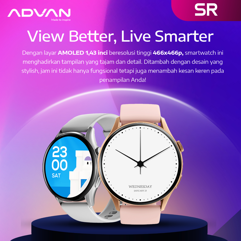 ADVAN Smartwatch SR | Amoled Display 1.43" | Bluetooth Call | Ai Voice Assistant | Waterproof IP68 | Bluetooth 5.2 | 10
