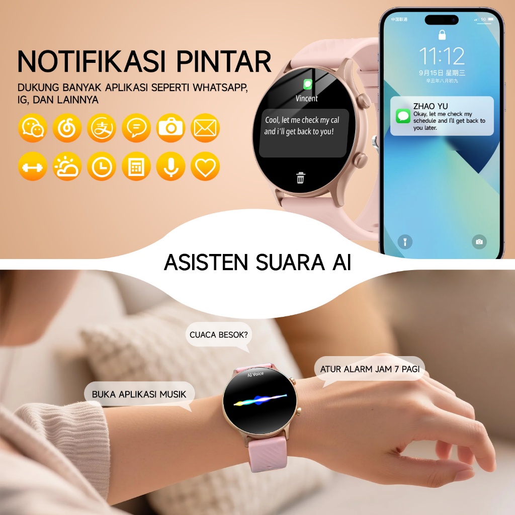 BOZLUN Smartwatch B53S IP67 Tahan Air Jam Digital Wanita Layar Sentuh Deteksi Tekanan Darah Panggilan Bluetooth Kalkulat