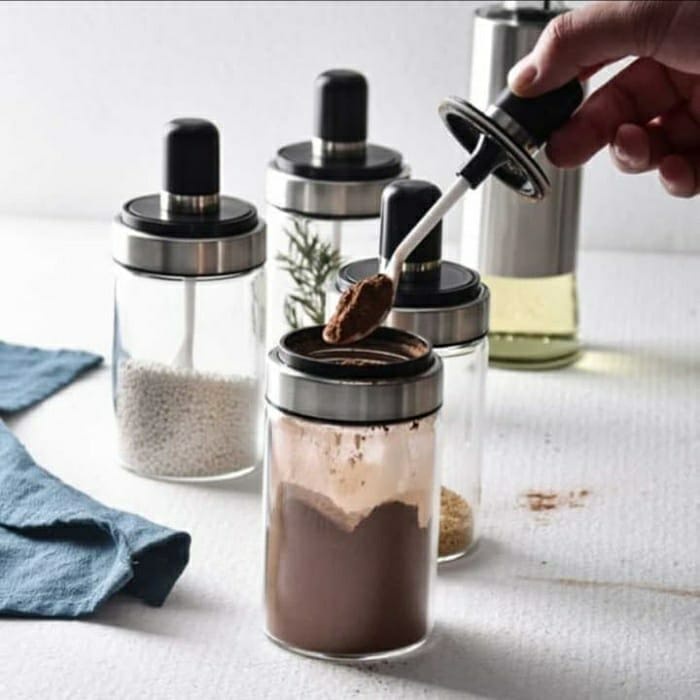 FCH PAKET 5PCS Tempat bumbu + sendok dapur garam gula / kopi serbaguna botol bumbu tutup kedap Toples wadah bumbu minyak garam