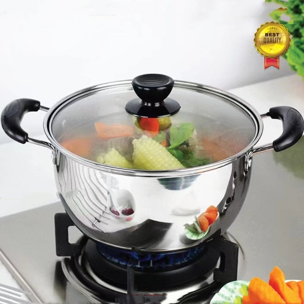 Panci Masak Soup Stainless Steel Tutup Kaca/Saucepot