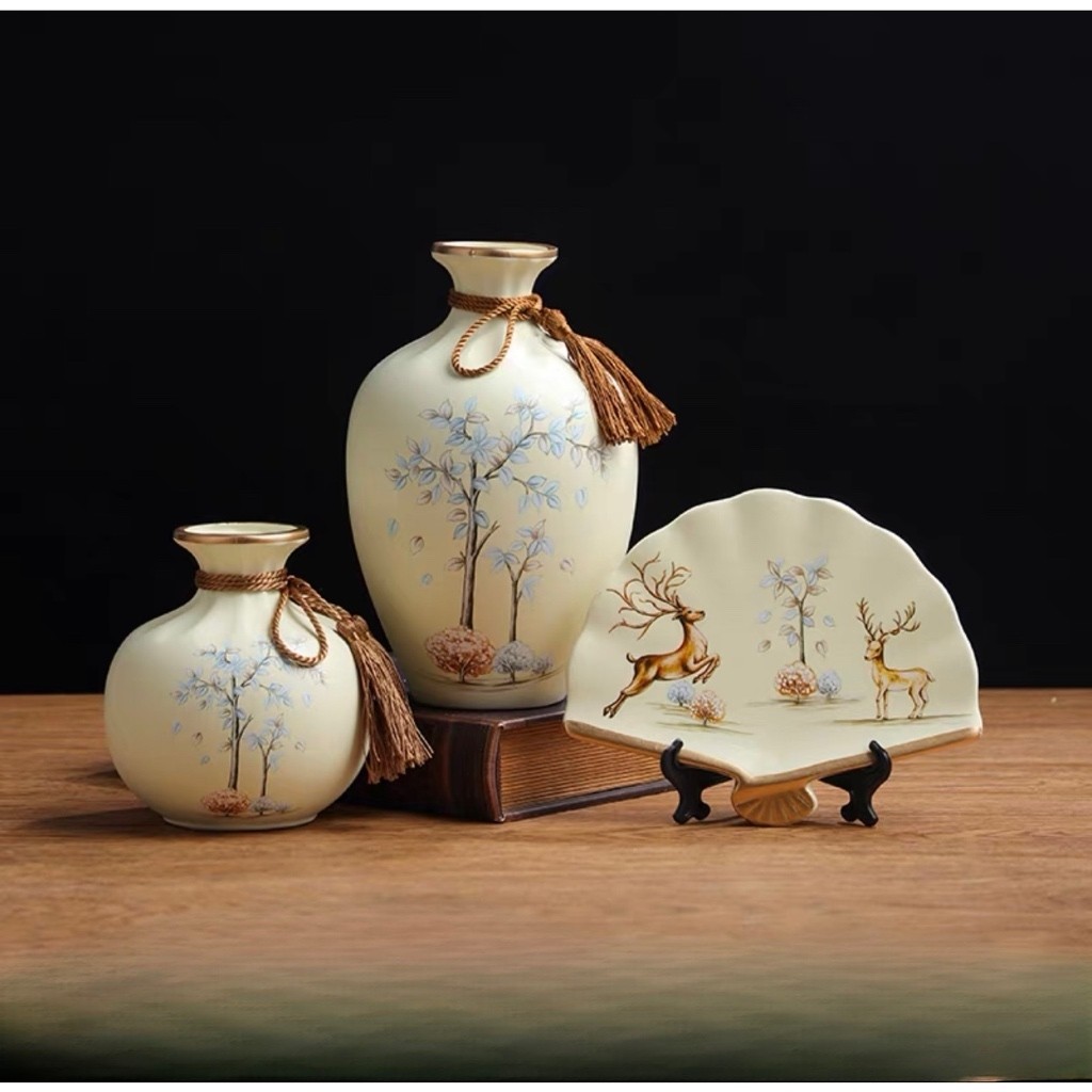 New VAS Bunga Pajangan SET 3PCS Dekorasi Rumah Model Oriental Eropa VAS Antik Klasik Guci / Dekorasi Vas Bunga Blossom Eropa Retro Set Keramik
