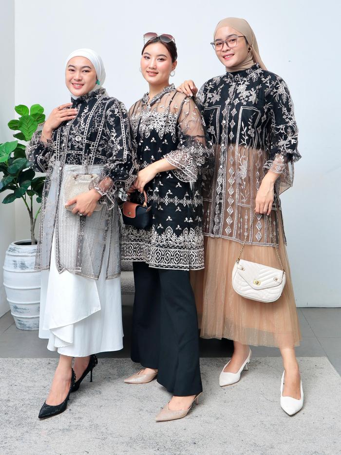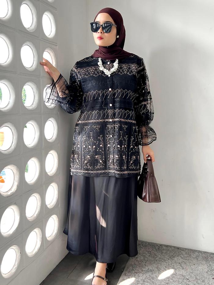 Outer Brukat Kekinian Kancing Haura - Atasan Panjang Mewah Muslim Wanita Baju Hitam Cardigan Kardigan - Burgundy Azura,