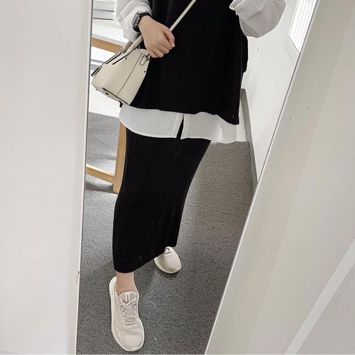 Zoey Rok Span Rajut 7/8 / Rok Span Rajut Polos / Bawahan Wanita / Korean Style /Shabhira16 - Hitam
