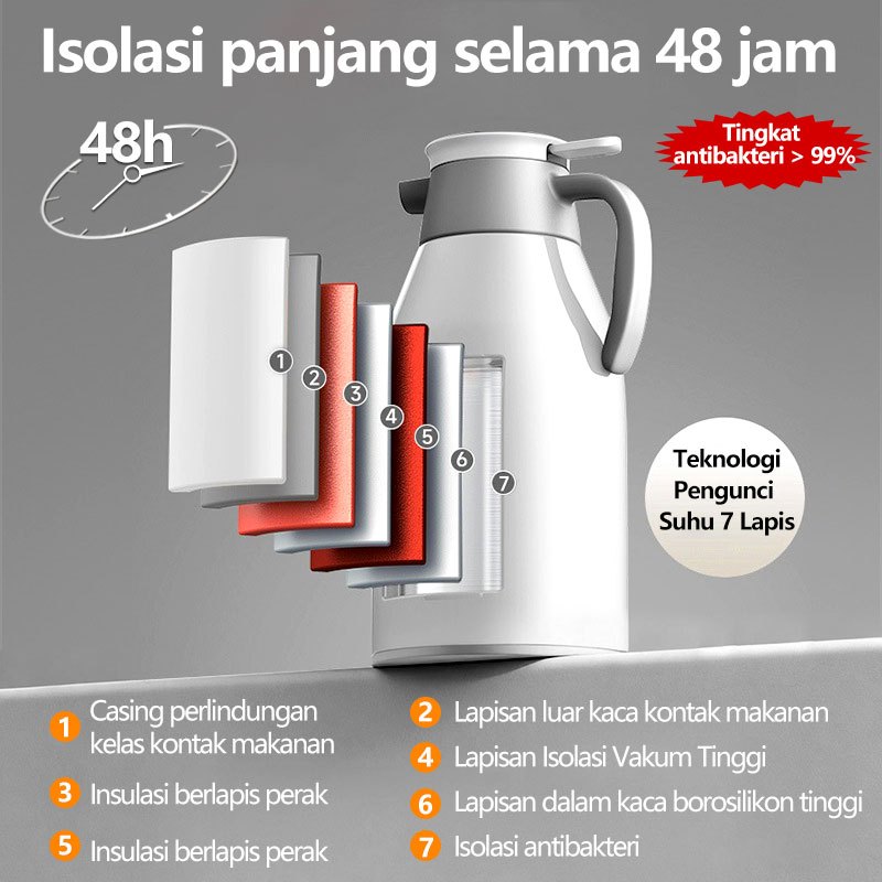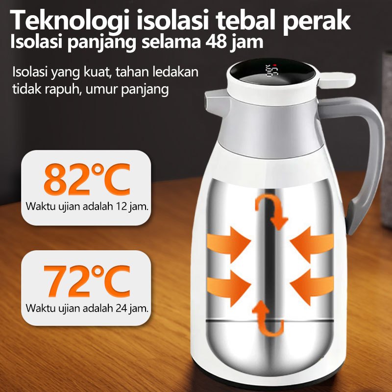 Termos Teko Air Panas Dingin Intelligent Vacuum - Kapasitas 2L Tampilan Suhu Digital Hemat Panas & Dingin Hingga 48 Jam